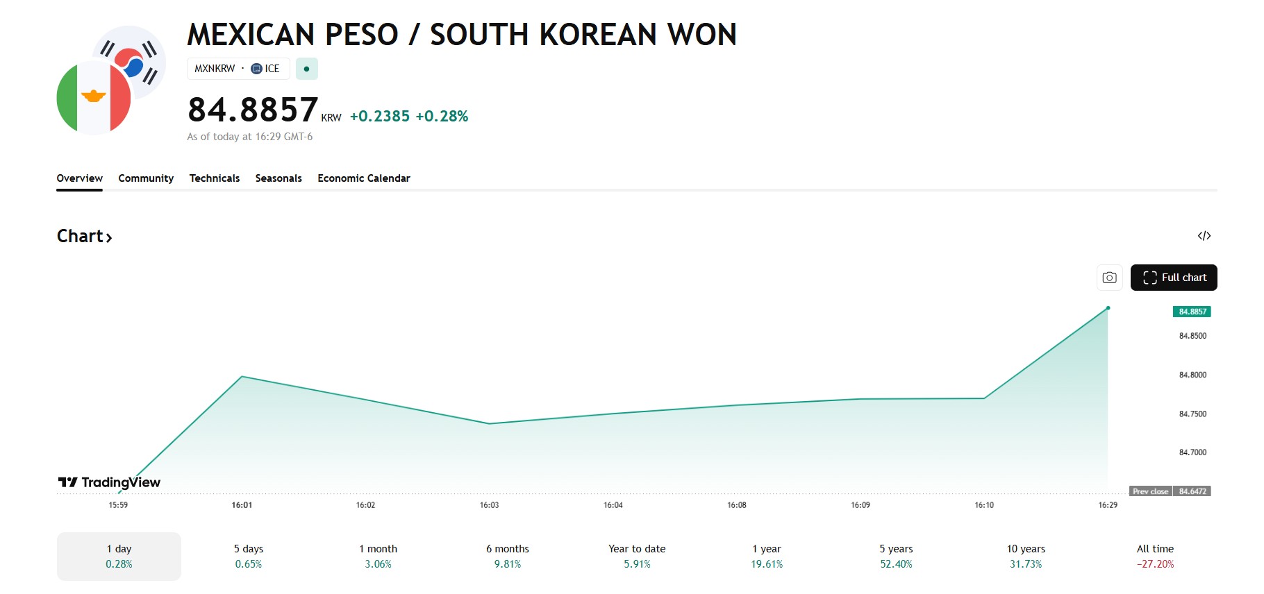 MXN/KRW: 84.8857 (+0.28%)