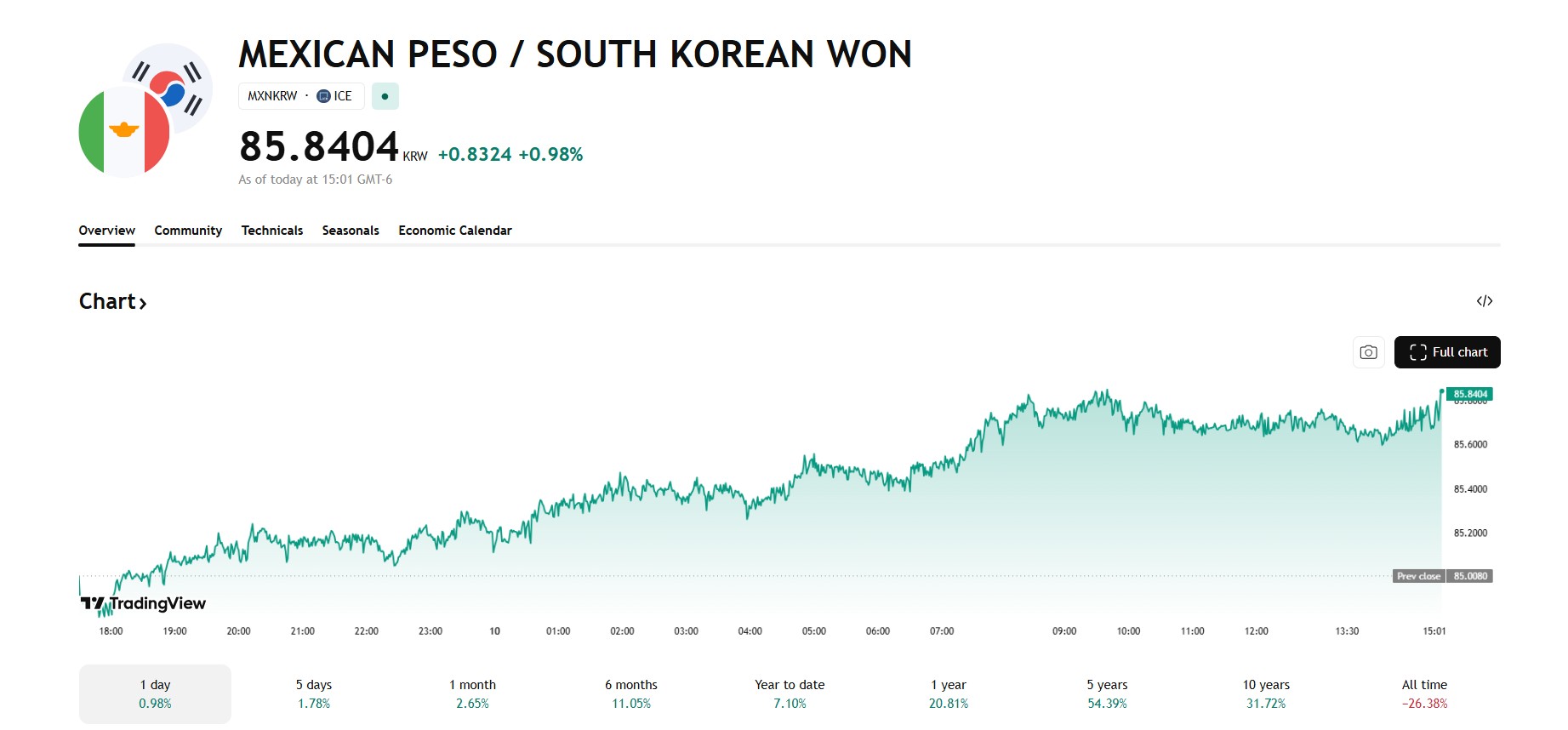 MXN/KRW: 85.8404 (+0.98%)