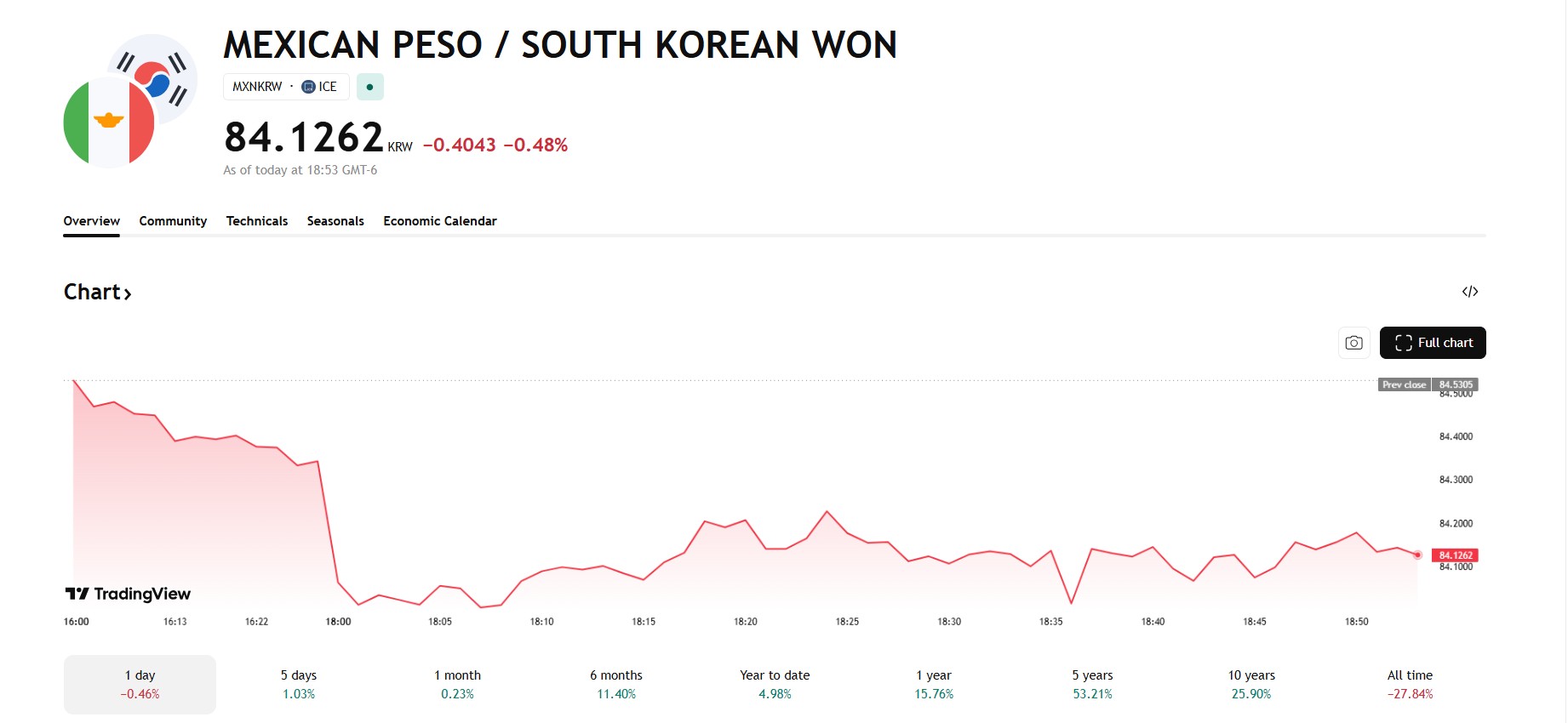 Imágenes de monitoreo financiero en tiempo real (TradingView) muestran que el tipo de cambio USD/MXN alcanzó picos de hasta 17.8400 durante la tarde, reflejando una presión constante. Paralelamente, en el mercado de divisas cruzadas, la relación entre el peso y la moneda de Corea del Sur se situó en 84.1262 wones por peso, registrando una caída del 0.48%. Esta fluctuación es de particular interés para la comunidad empresarial coreana, que mantiene una fuerte presencia manufacturera en territorio mexicano.