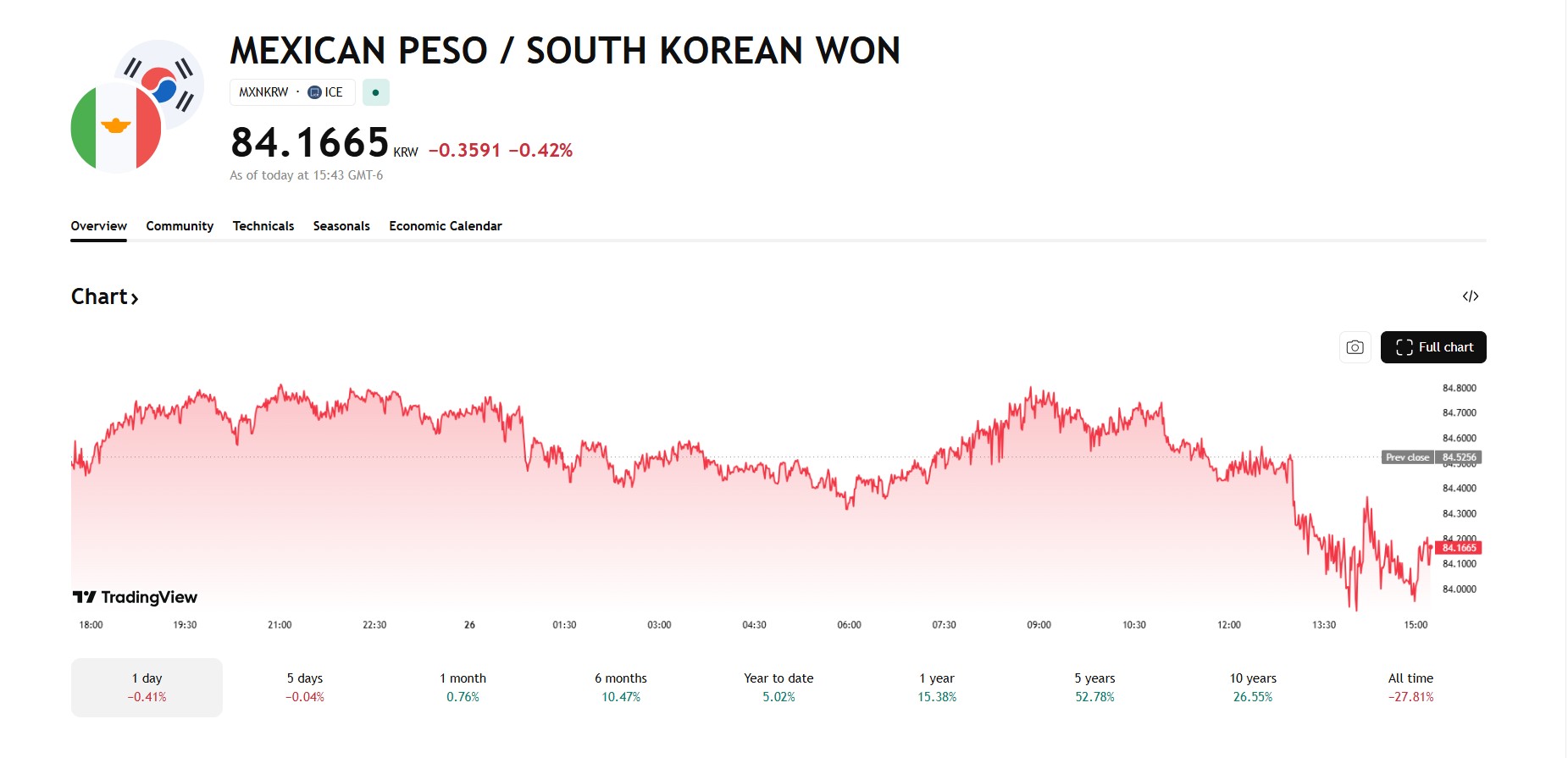 La debilidad de la moneda azteca también se sintió frente a la divisa de Corea del Sur. El cruce MXN/KRW cayó un 0.42%, cotizando en los 84.16 wons, tras haber iniciado la jornada cerca de los 84.80.